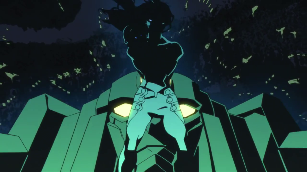 Освободив Нию они сливаются в Тенген Топпа Гуррен-Лаганна. В ответ на это Антиспиральщики создают Гандзебому, считая, что победив, сражаясь на равных, они ввергнут остальных спиральных существ в отчаянье. Спиральщики проигрывают, но заметив Землю, Аниспиральщик решает уничтожить ее, что мотивирует спиральщиков продолжать бой. Антиспиральщики пытаются уничтожить Сокрушителя Небес, используя силу Большого Взрыва, однако Лоргеном, жертвуя собой, превращает ее в спиральную энергию, которую поглощают спиральщики. В результате противостояния Гандзебомы разрушает по одному Тенген, Сверхгалактического Гуррен Лаганна и Арк-Гуррен Лаганна. Когда Гуррен Лаганн начал проигрывать, Вирал вырвал Лаганна и бросил его в Антиспиральщика. На полуразрушенном Лаганне Симон побеждает Антиспиральщика. Когда перед смертью он просит Симона защитить Вселенную, Симон говорит, что люди не на столько глупы, что бы ее уничтожить.