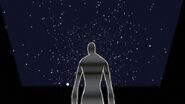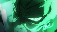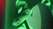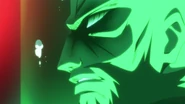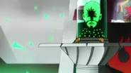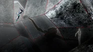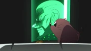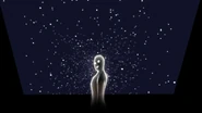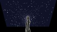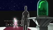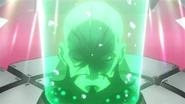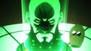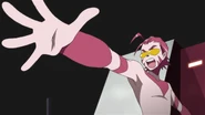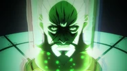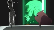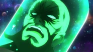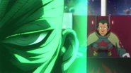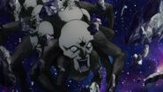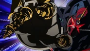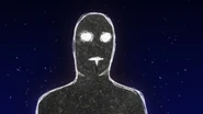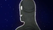 Nia is happy to see Simon, but a dark face suddenly clouds his view, and the Anti-Spiral voice decides to make them pursue the same fate as the spiral warriors of old times. Before Simon realizes what’s going on, he’s taken back to his younger self back on Earth digging holes. He and Kamina are jewel thieves, and Simon’s drill allows them to break into places to steal. Unlike in the real universe, the "Kamina" in this universe is a cowardly thief who believes the best way to fight the Beastmen is to steal from them and sell the loot. Yoko is also in this alternate universe, and her identity is that of the famous bounty hunter Yoko Ritona. In fact, the entire crew of the Super Galaxy Gurren Lagann is there, and Lord Genome and Boota are the only ones left unaffected. Taking the form of a black, featureless, and shadowy being, the Anti-Spiral voice confirms that the crew is trapped in multiverses that they can’t get out of as long as they have their intelligence. After a brief chat about how Lord Genome is here to settle things after his past fight, the black Anti-Spiral prepares to fire a blast at the head. However, Lord Genome notes that the Anti-Spiral is being too polite and thinks that if the Anti-Spirals were acting serious, they would have no trouble annihilating the Spirals. The Anti-Spiral admits that it was because they felt an unidentifiable spiral power, and the analysis was marred by holes.