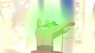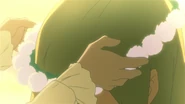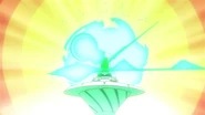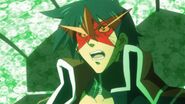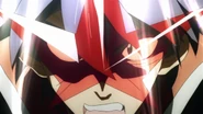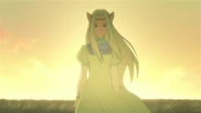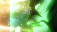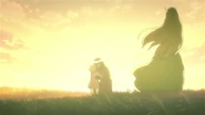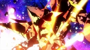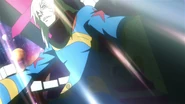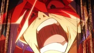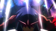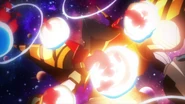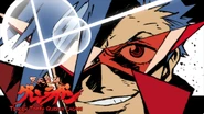 After this light clears the skies, Kamina urges Simon to go without letting feelings of “if” mislead him. Simon agrees, so Kamina tells him not to forget that his universe is in Simon’s universe. As Simon decides that it’s time to go, Kamina says that this time is really goodbye, but Simon feels that it’s not goodbye because they’ll always be together inside of him. Simon then uses his core drill to absorbed the Multiverse Labyrinth and transform himself into the Gurren Lagann and takes off into the sky. Yoko meanwhile sees herself getting married on TV to Kittan, but she then turns it off and finds Kamina holding the TV. After thanking him, she grabs her own glowing core drill and joins Simon in the sky. Across the world, each of the Dai Gurren-dan members does the same, with the final one being Viral (who is shown with a wife and a kid, reflecting an impossible desire of having a family - as Beastmen cannot reproduce).