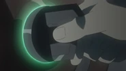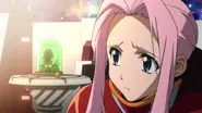 With Simon completely shocked upon hearing this, Lord Genome confirms it as truth and suggests that Simon had intuitively realized it because he had been using the power. However, Lord Genome also says that there is one more truth: Nia is waiting for him. Simon feels that Lord Genome is right and regains his fighting spirit, and when the Anti-Spiral voice wonders if he’d destroy the whole universe for short-lived emotion, Simon replies that he’ll protect both the girl and the universe. Not knowing what’s going to happen tomorrow but not wanting to regret right now is what the Dai Gurren-dan is about. He then directs a twister type ability at the enemy ship, but the ship disappears through a portal. Lord Genome warns the crew that their enemy is using Random Schrödinger Warping where they control multidimensional probability variation, though fortunately the Super Galaxy Gurren Lagann has a weapons system that can launch a barrage of fire into the space and time axes. This succeeds in flushing out the enemy ship, and Simon finishes it off with the Super Galaxy Giga Drill Break. The avatar of Nia smiles at this, but she soon disappears. Lord Genome then reports that the interference is gone, so they can go to the real Nia now, and Simon is able to visualize where she is.