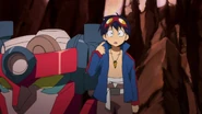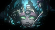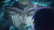 Lagann is a Gunman found by Simon in the first episode while digging tunnels in his village. It received its name, Lagann (羅顔), meaning "enveloping face", from Kamina and draws power from the Core Drill, a small golden drill Simon uses similar to an ignition key. In Gurren Lagann Parallel Works episode 8, it's revealed that the first Laganns were found by Lordgenome as a child during the Anti-Spirals' initial assault on Earth long before the series' story begins and as such were used as a basis in the creation of all Gunmen that appear in the show to use against their enemies. However, after Lordgenome's betrayal he seemingly destroyed all of them except for the one that was placed deep underground until Simon finds it.